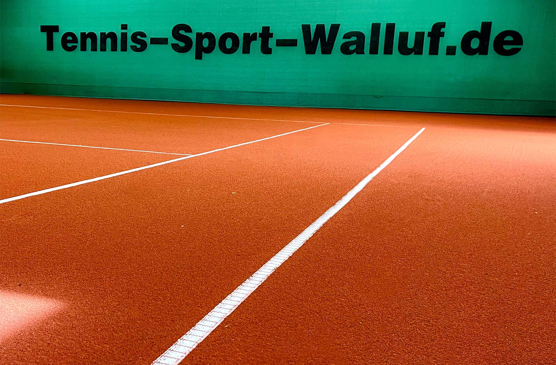 Tennis Sport Walluf besteht aus zwei Tennishallen. Eine Tennishalle mit drei Teppichplätzen und eine separate Tennishalle mit einem Tennis Force® Granulat Belag, der eine Spieleigenschaft wie ein Sandplatz bietet.